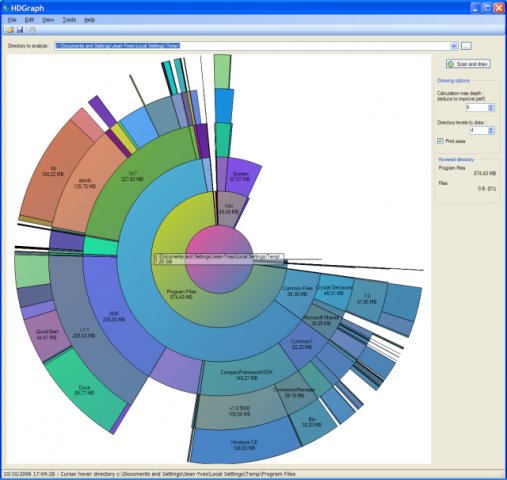 HDG est un utilitaire permettant d'afficher l'occupation de l'espace disque sous forme graphique, via des camemberts imbriqués. Il permet ainsi de voir d'un seul coup d'oeil les répertoires les plus volumineux de votre disque dur.